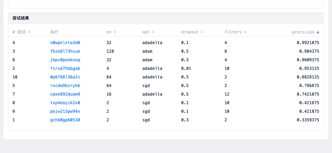 - 自动调参:展示结果支持排序,可以更方便的选出最优的结果