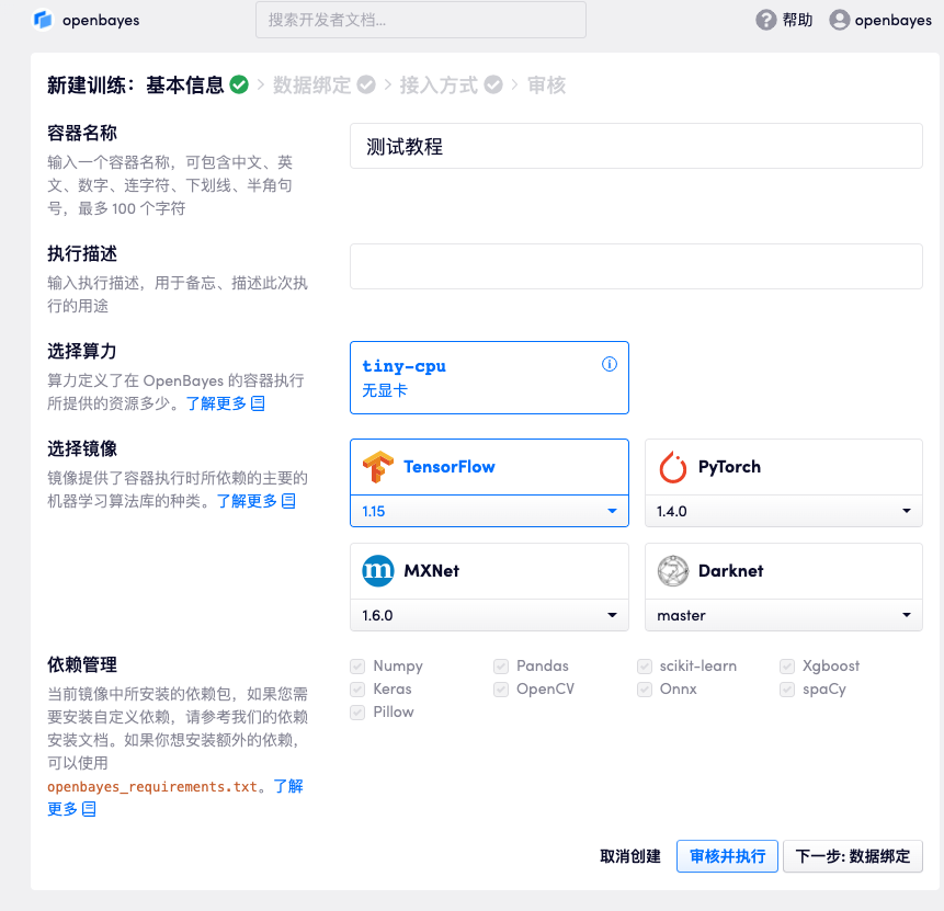 公开教程通常是指可以执行的代码、Jupyter 工作空间的集合,对于 OpenBayes 账号来说,一个「公开教程」实际上就是一个关闭了的「容器的执行」。按照以下步骤可以创建一个公开教程。