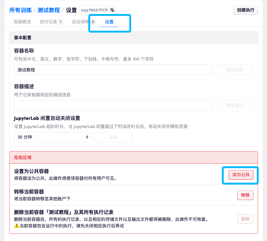 当容器中有多次执行时,公开教程中所展示的内容永远是最新一次执行或者是快照的内容。如果需要对公开教程里面的内容进行更新只需要在对应的公开容器中创建新的版本即可。