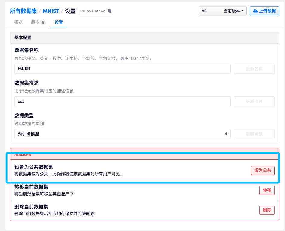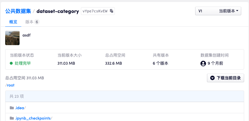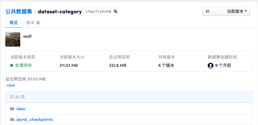 数据集设置为公开后,该数据集下所有的数据集版本都会公开,而不像「公开教程」只是展示最新的一次执行。