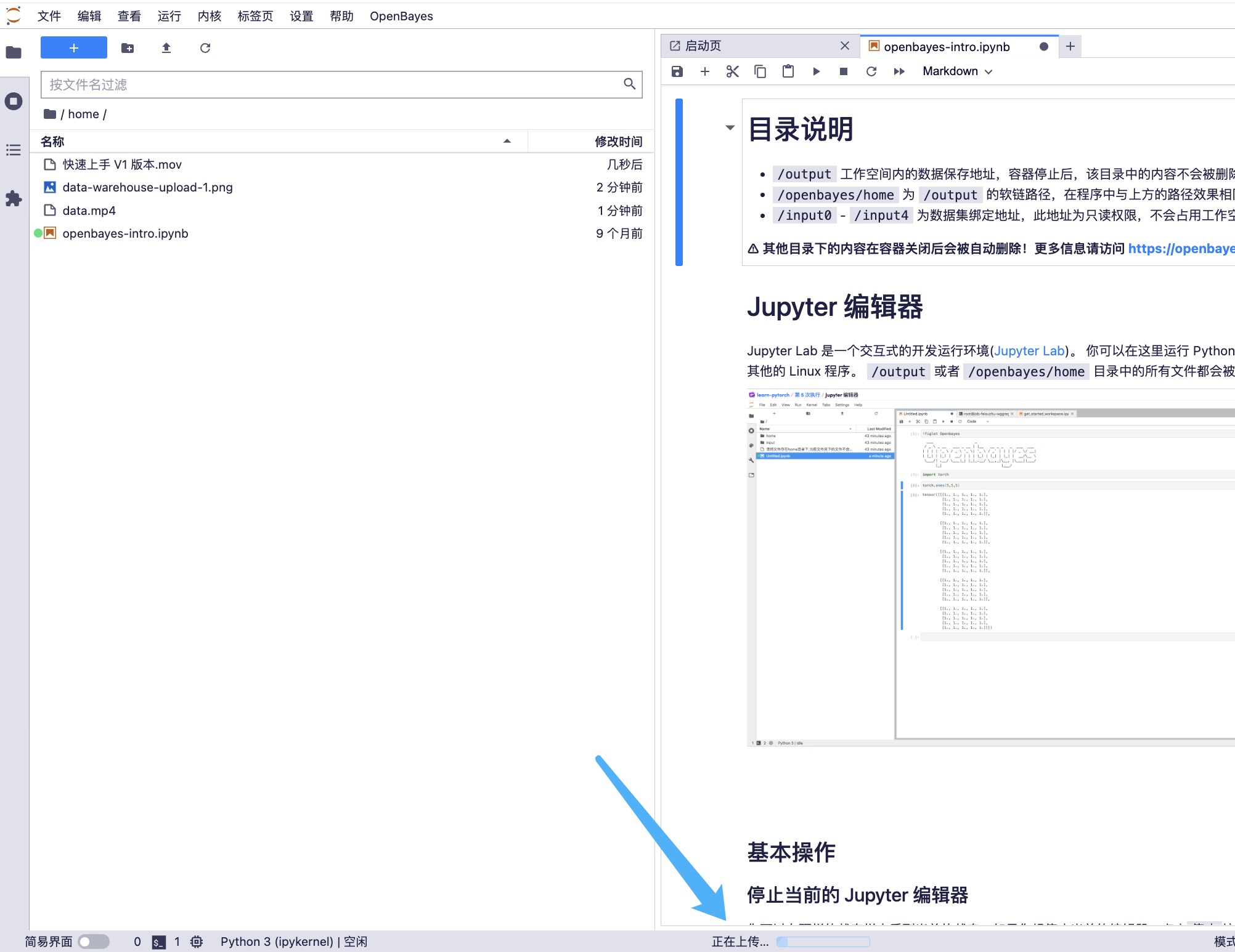 通过「Jupyter 工作空间」进行数据上传