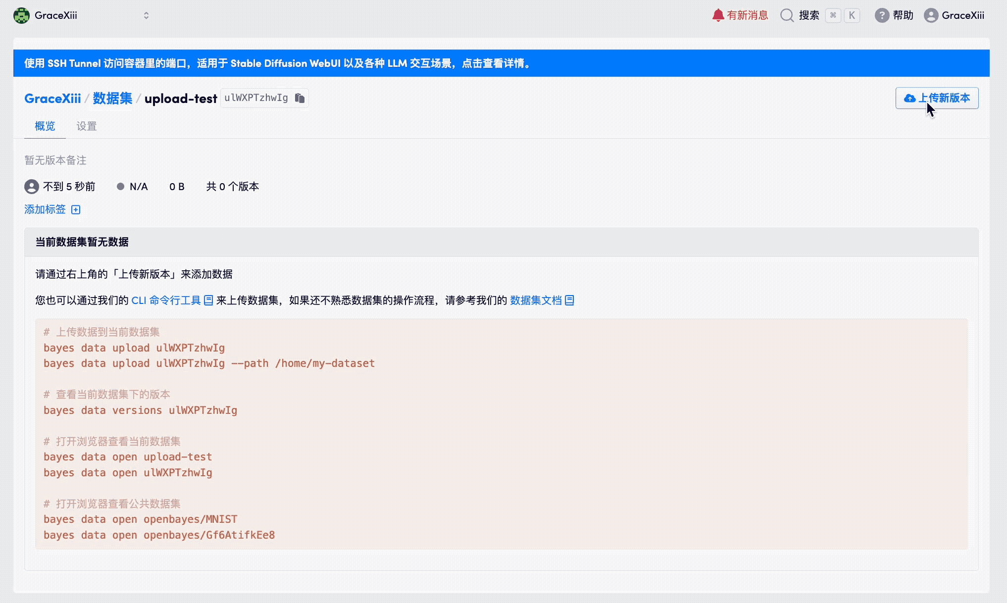 - 使用 OpenBayes「数据仓库」中的「上传」功能