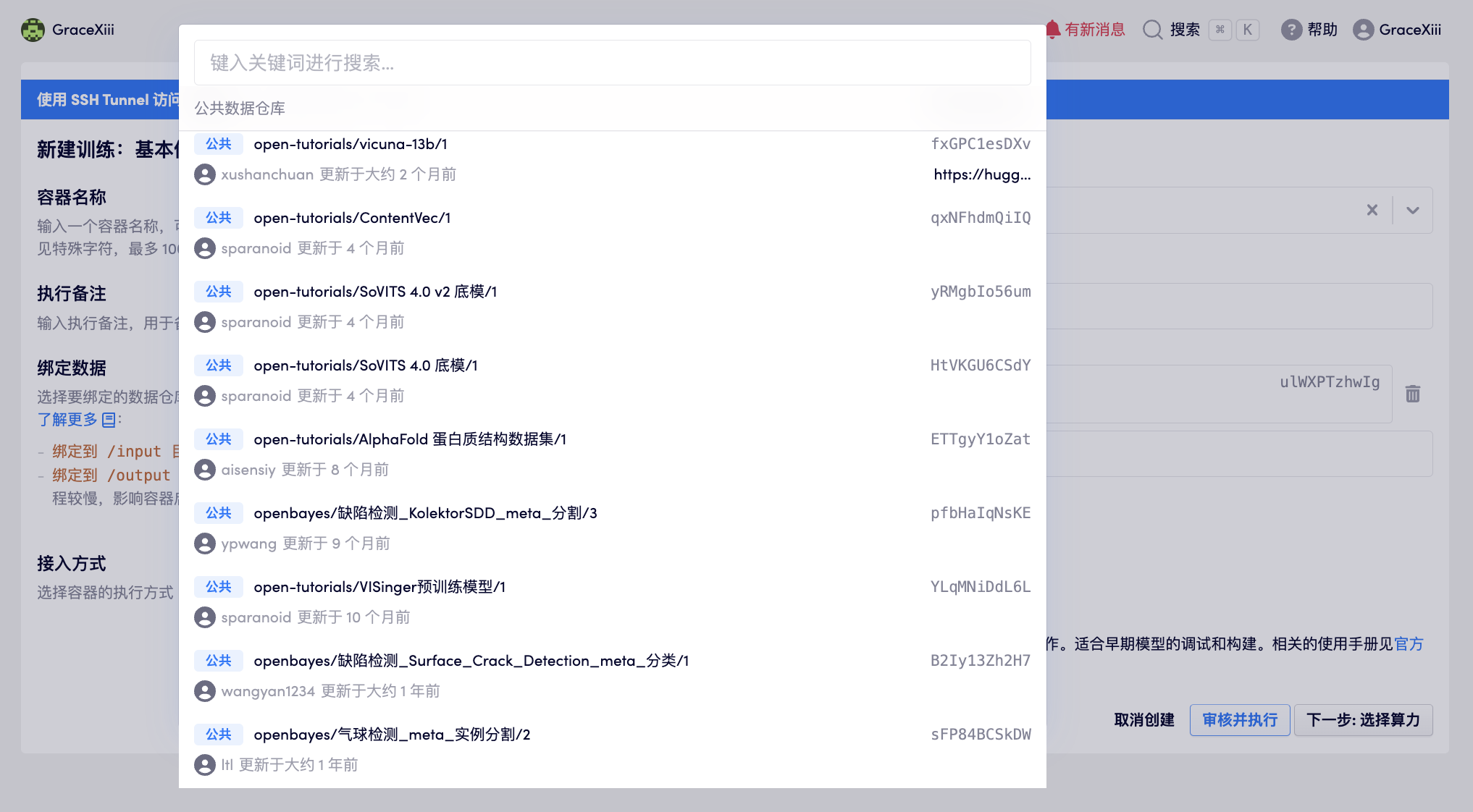 在创建容器时,绑定数据可以选择所创建的数据集将其绑定到容器中指定的目录。
