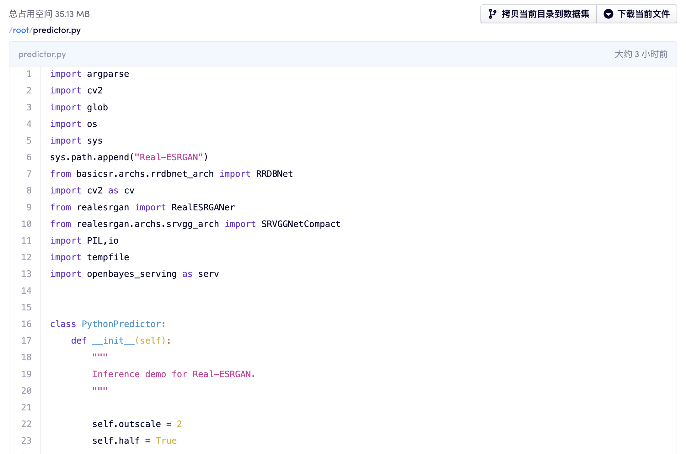 容器的「工作目录」中的部分文件支持预览,其中支持的文件类型包括 .txt .py .ipynb .csv .md 以及多种图片类型。