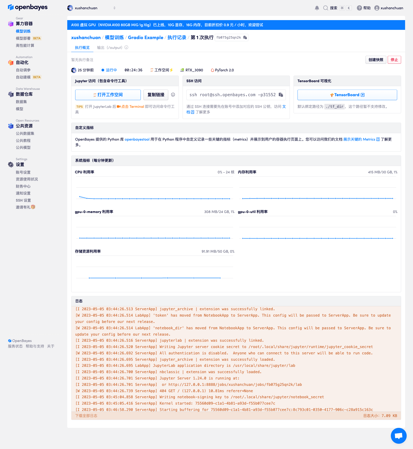 1. 启动一个 openbayes 的工作空间