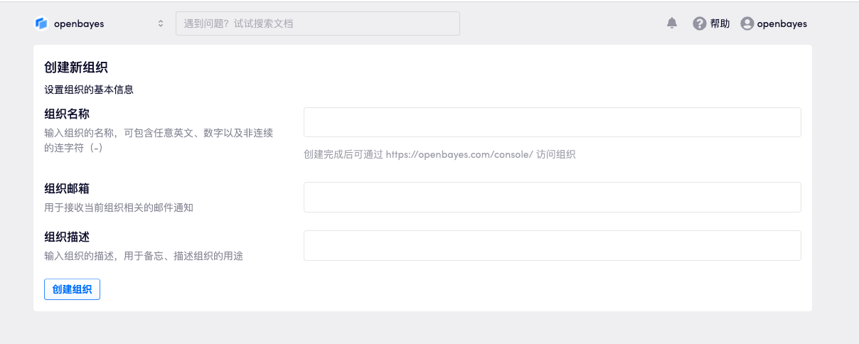 创建组织允许使用已经在 OpenBayes 注册过的邮箱。