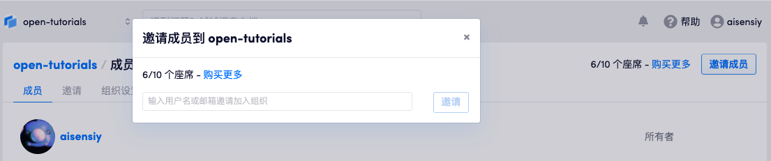 组织免费提供 3 个座席,即除组织创建者外可以增加额外两个成员参与组织协作。如果希望更多的成员参与组织协作,可以通过「购买座席」来实现。