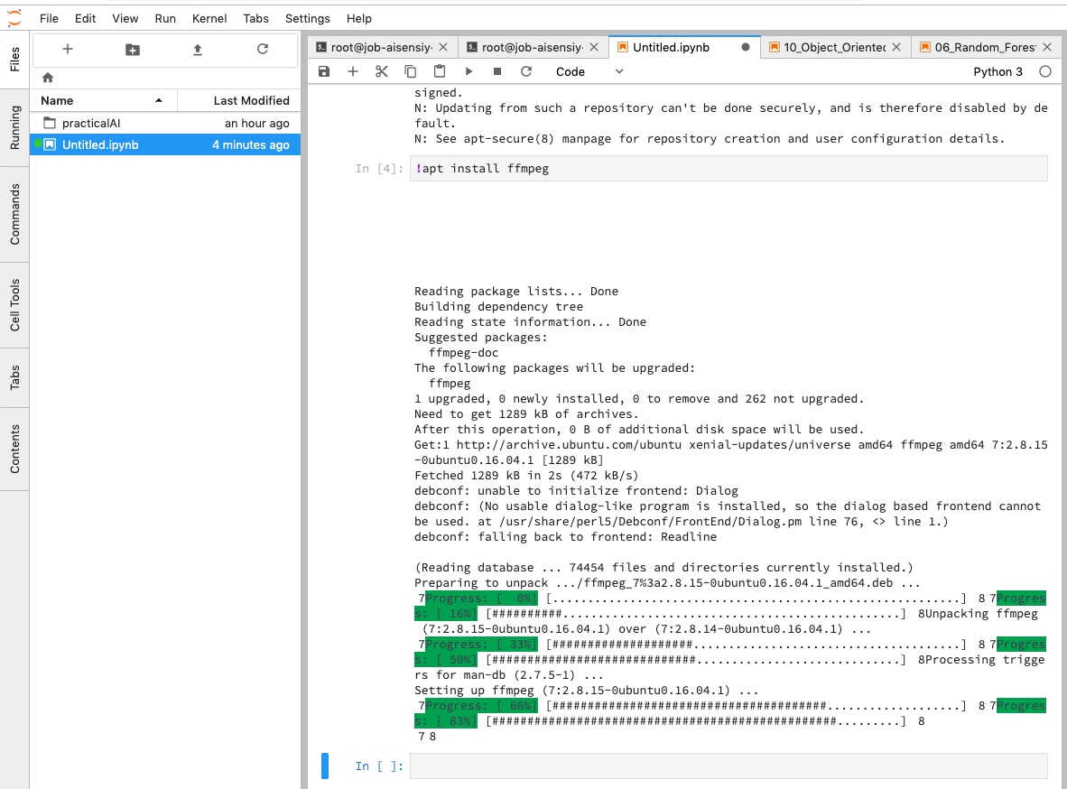 在「Jupyter 工作空间」中你可以在其中安装任意你需要的依赖,不论是 Python 的或者是通过 apt 安装的其他依赖。