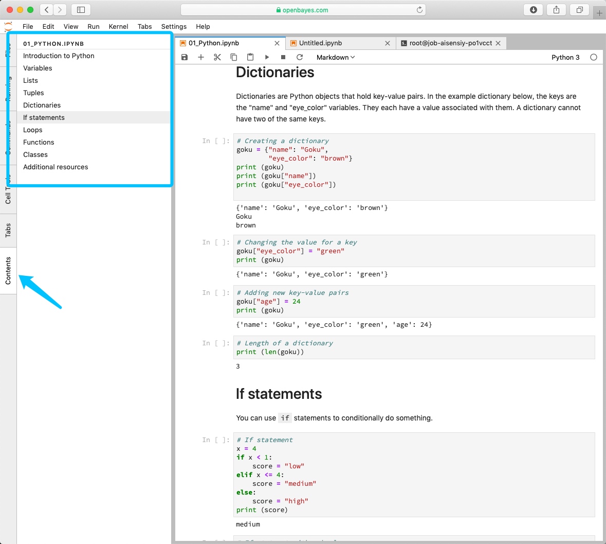 再次打开一个 .ipynb 文件,即可看到左侧出现了「目录」的选项卡,点击后即可看到当前文件的目录了。