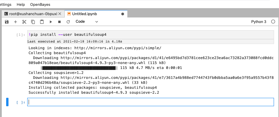默认的 OpenBayes 运行时环境已经安装了大量的机器学习场景下的依赖,如果你依然需要额外的依赖,可以通过以下方式安装。