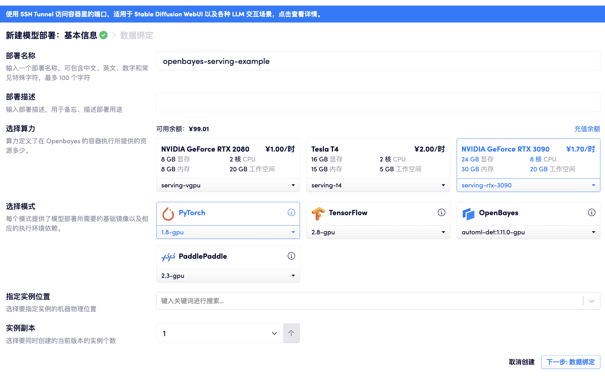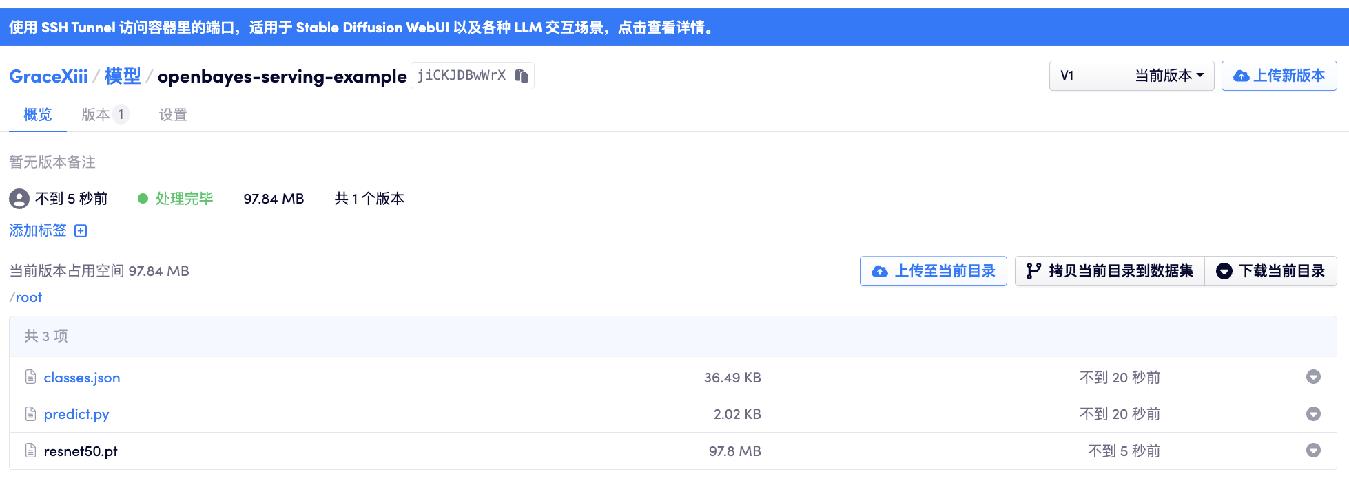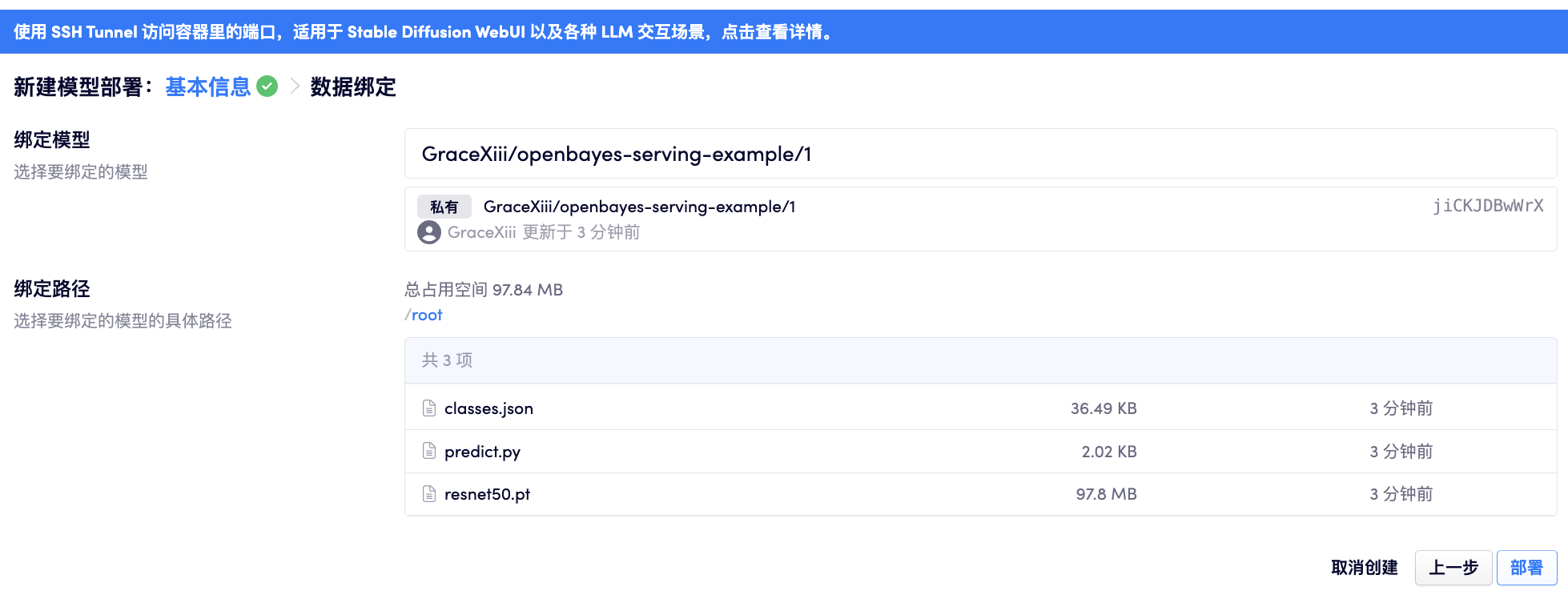 绑定模型目录,选择刚才上传的模型版本目录:
