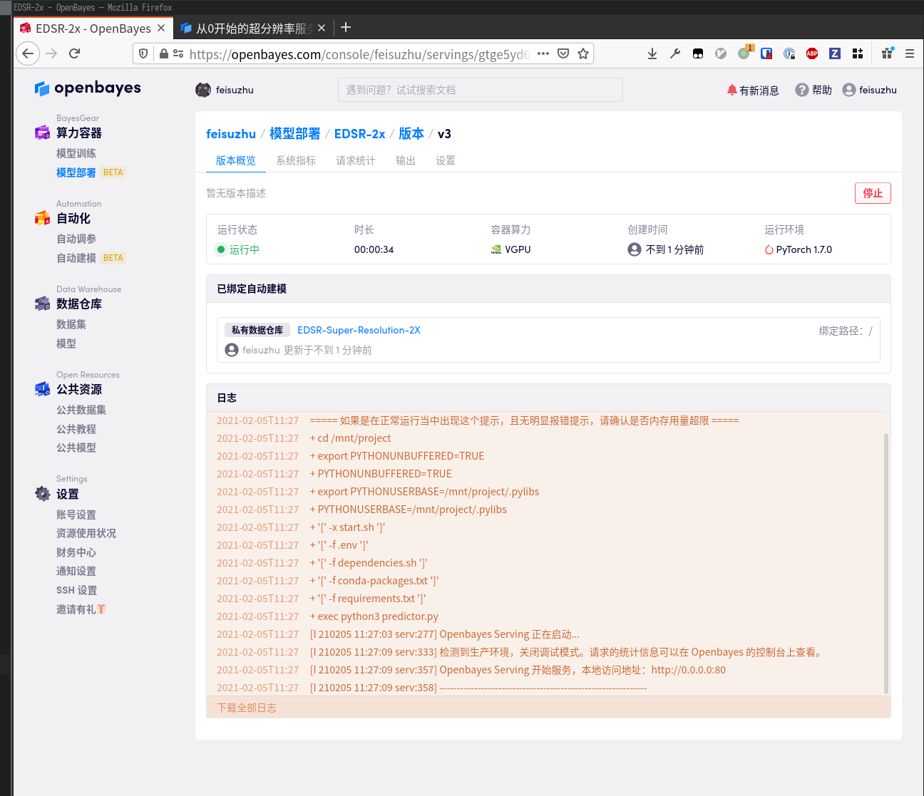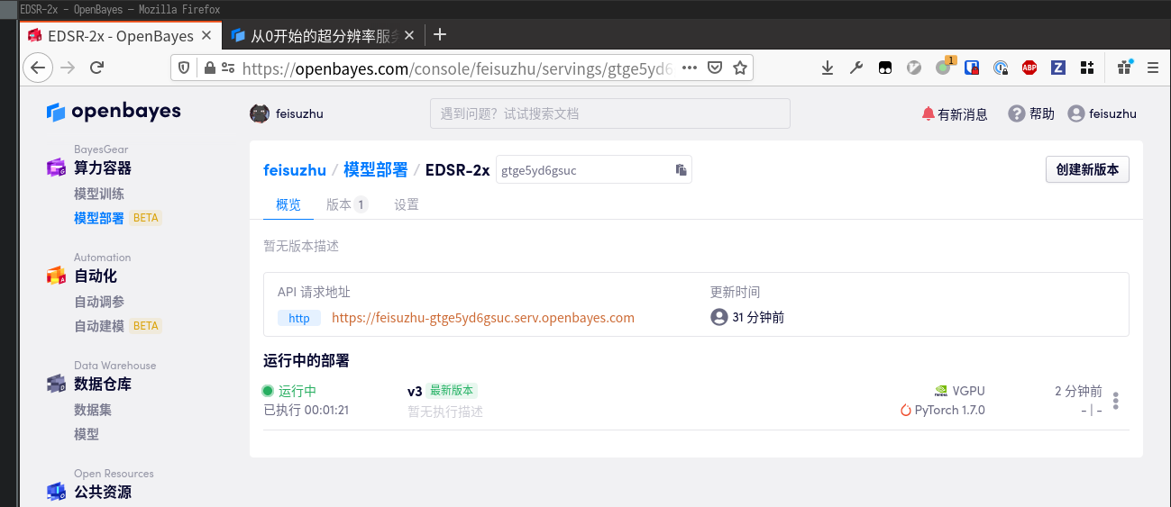 至此已经成功将超分辨率服务上线。