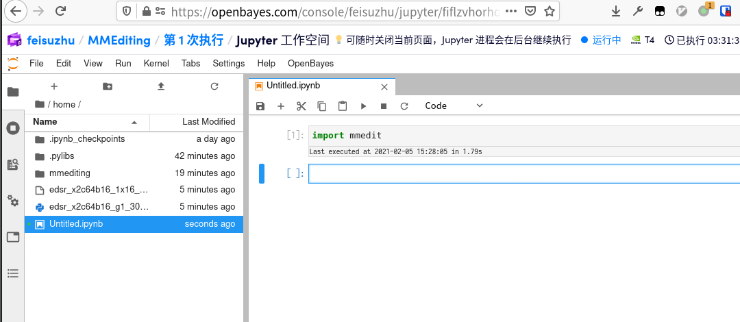 上传完成后,在 home 目录新开启一个 Notebook,执行