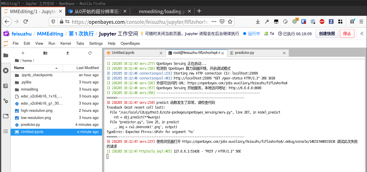 但是重新回到 predictor.py 的 Terminal 窗口,发现报了一个很奇怪的错误。