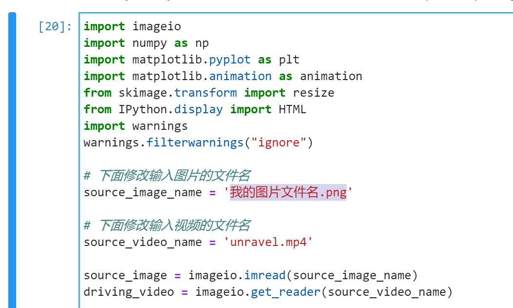 然后在右侧代码块中,滚动到下方标有 [20]: 的代码块。将 import.png 替换为刚刚上传的图片的文件名: