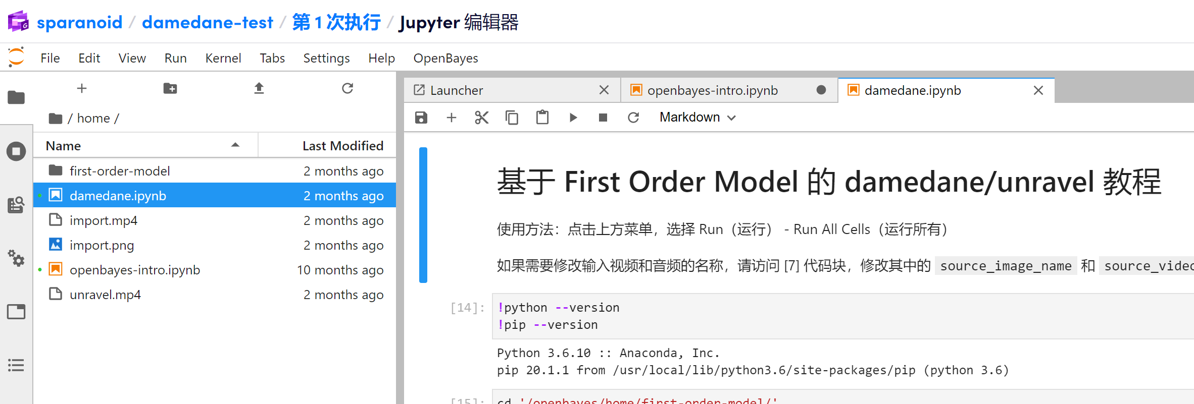 在 Jupyter 编辑器中,左侧双击 damedane.ipynb。打开相应文件: