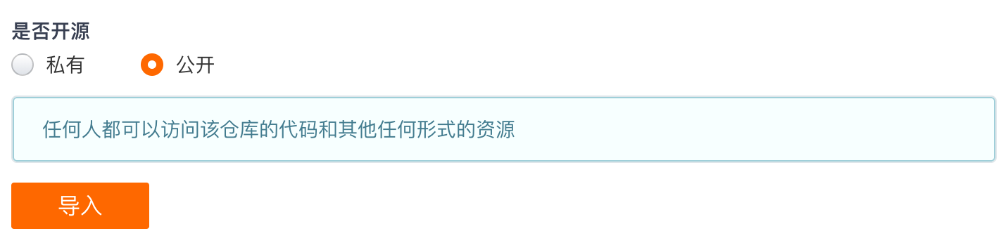 如果选择导入到自己的账户,那需要在下方的是否开源选项中勾选「公开」,然后点击导入: